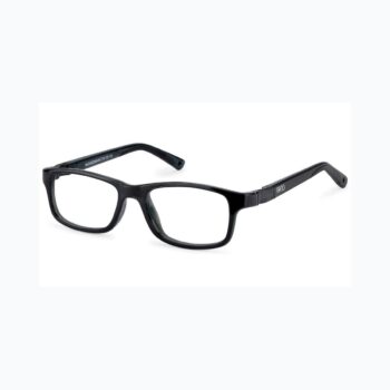 Crew 46.0 kids glasses in Satin Black/Black. Classic rectangular frames for everyday wear. Made from Siliflex with interchangeable temples, band and mini-band.