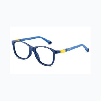 Quest 48.0 kids glasses in Matte Navy/Blue/Yellow. Sleek, minimal frames for everyday wear. Made from Siliflex with interchangeable temples, band and mini-band.