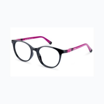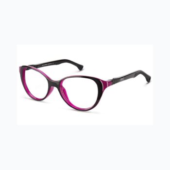 Glitch 52.0 kids glasses in Crystal Black/Raspberry. Modern rectangular frames with contrasts. Flexible Siliflex with adjustable straps.