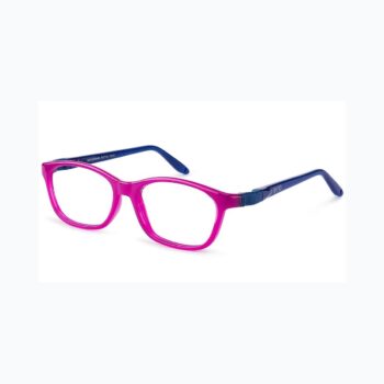Bind 53.0 kids glasses in Crystal Raspberry/Navy. Subtle rectangular frames for teens. Made from Siliflex with interchangeable temples, band and mini-band.